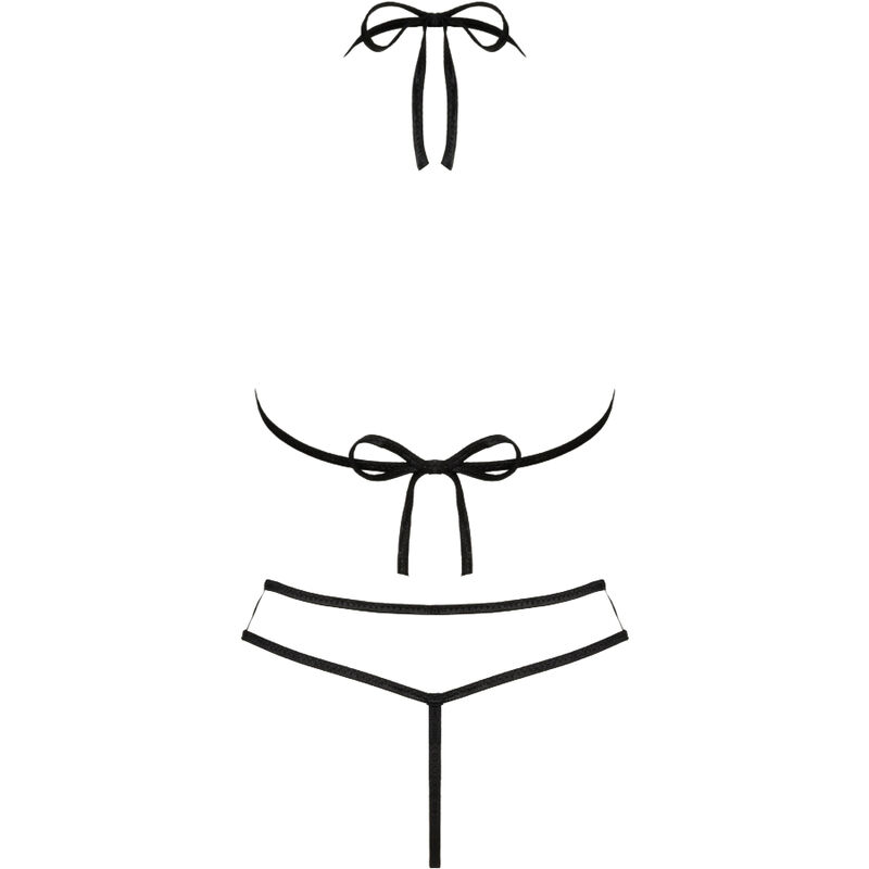 Lensemble insolite et épicé de Jimena se compose dun soutien-gorge et dun string assorti. Les bretelles noires accentuent encore davantage son caractère séduisant.