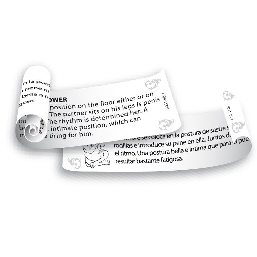 Une sensation pour vous et votre partenaire ! À l’aide de la pince à épiler, vous prélevez un parchemin dans le cœur. Quelle position érotique allez-vous essayer ? Sera-ce la balade de la déesse, le bateau de lamour ou ladoration ? Acceptez le défi et vivez ensemble le plaisir et l’intimité.